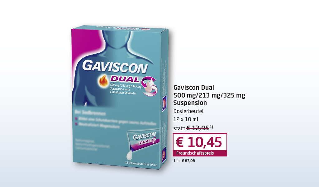 Kostenlos für alle Rezeptbestellungen oder ab 15€ rezeptfreier Ware. Ohne Rezept unter 15€ nehmen wir eine Liefergebühr von 2,95€.